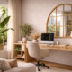 Un espejo en madera natural o roble aporta estructura y mantiene coherencia con la tendencia 2026 de materiales auténticos.